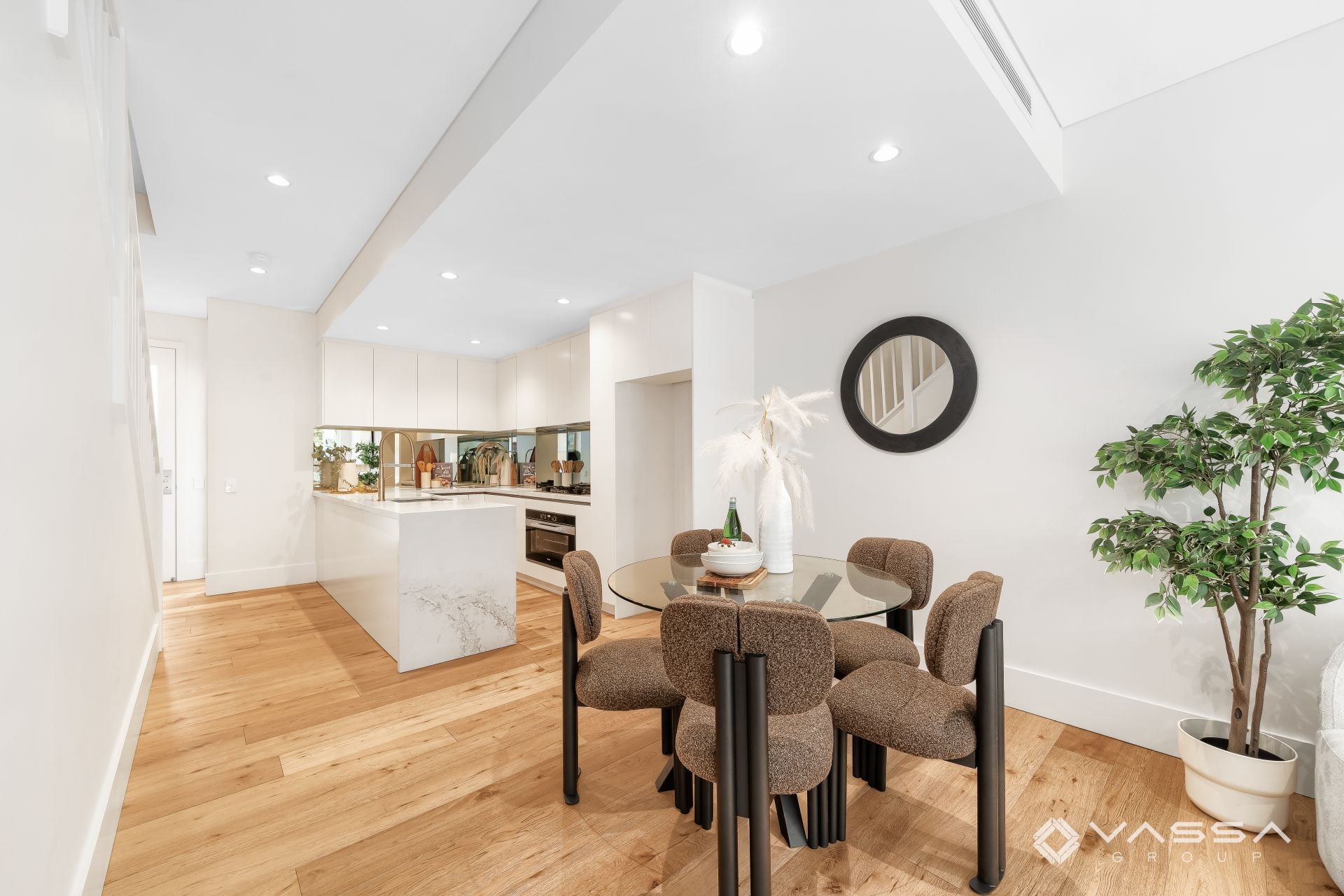 Set within lush landscaped surrounds, the home offers light-filled interiors, seamless indoor-outdoor living and outstanding privacy. The top level is enhanced by soaring ceilings of approximately 3.3 metres, creating a true sense of space and architectural presence rarely found in townhouse living.